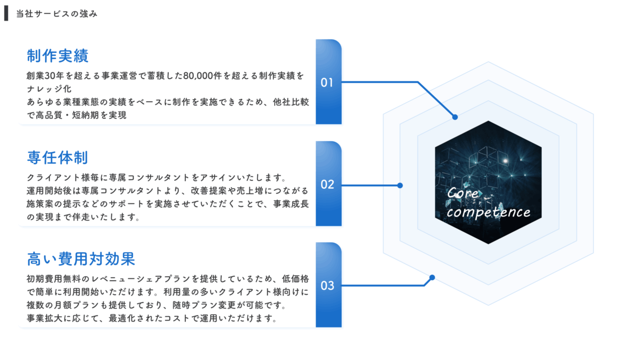 • 用途に応じて3〜6個の箇条書きに対応