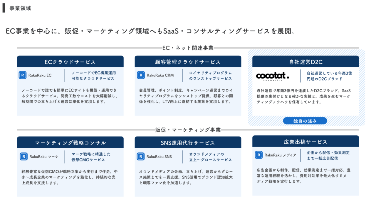 このスライドでは、各項目ごとにロゴや表題など複数の要素を整理して配置してます。